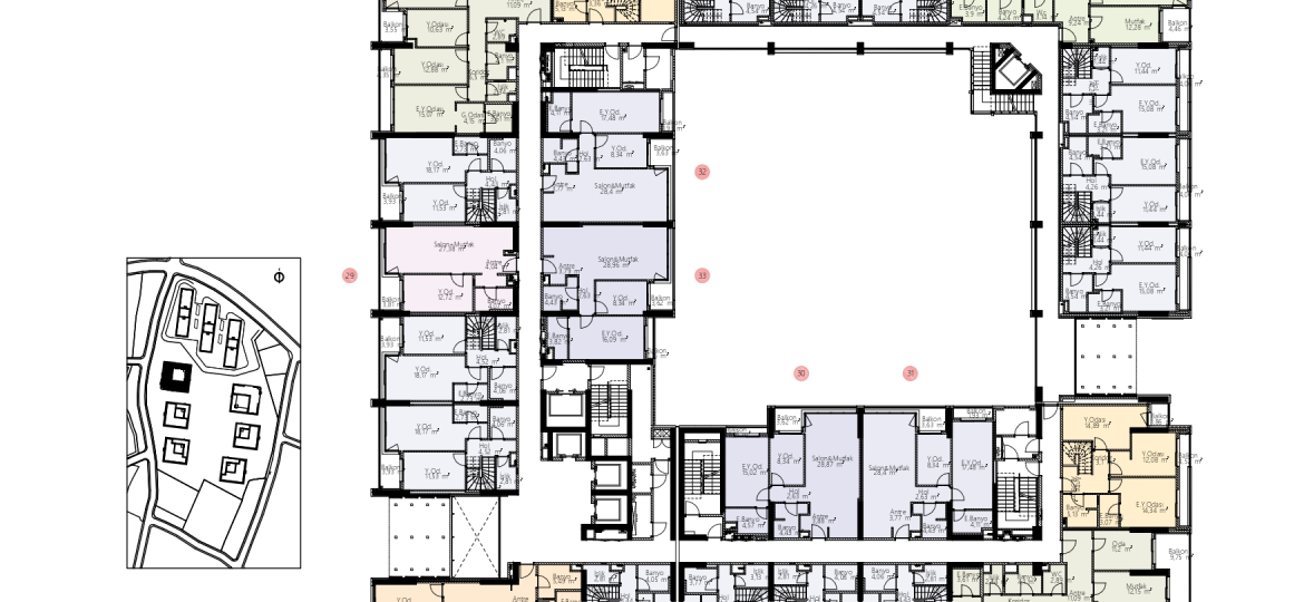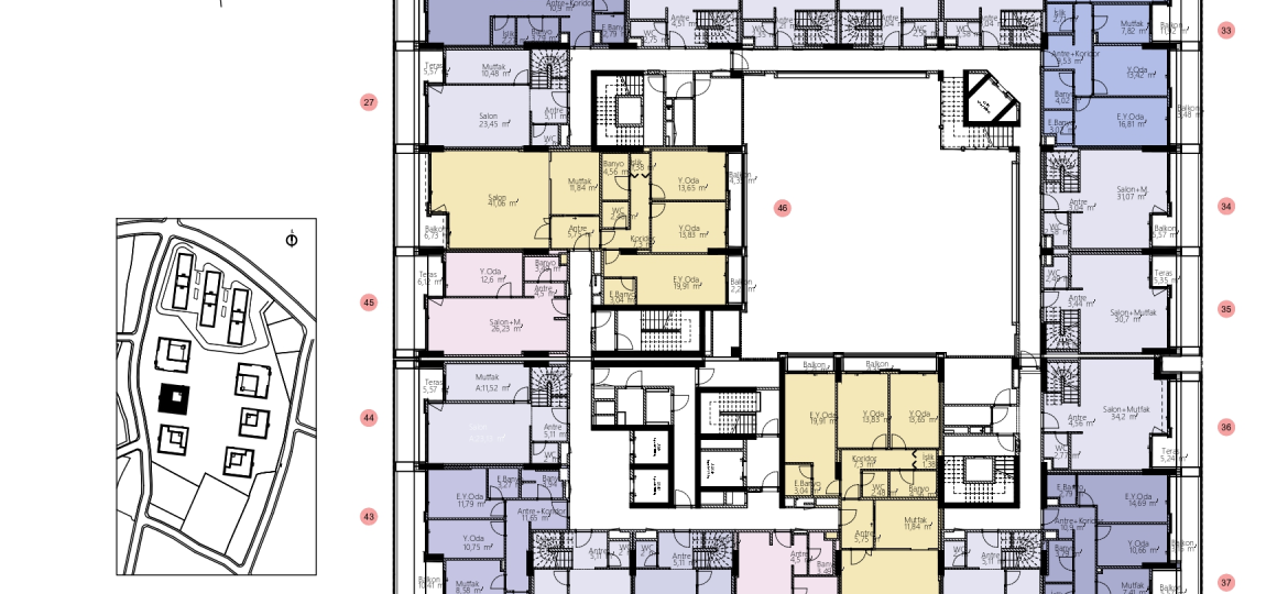 With 45,000 m² of landscaped areas and a 25,000 m² continuous garden, it offers a life intertwined with nature. Residents enjoy exclusive access to a private shopping mall, wellness and fitness centers, indoor pools, Turkish baths, and dedicated social spaces.